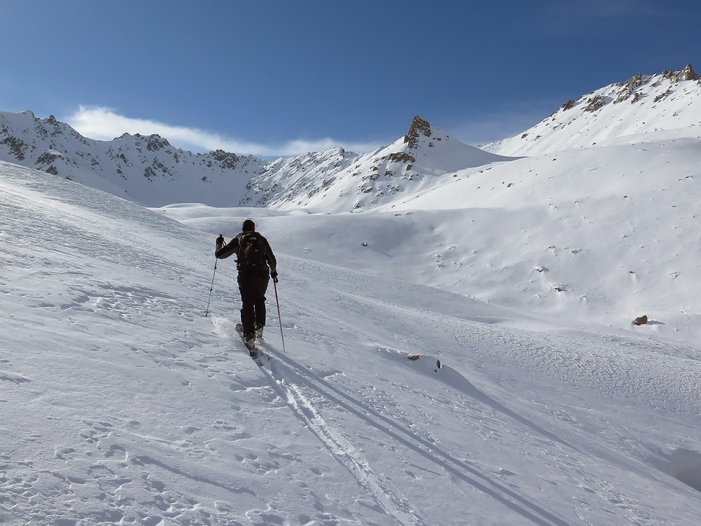 Snowmobile supported skiing