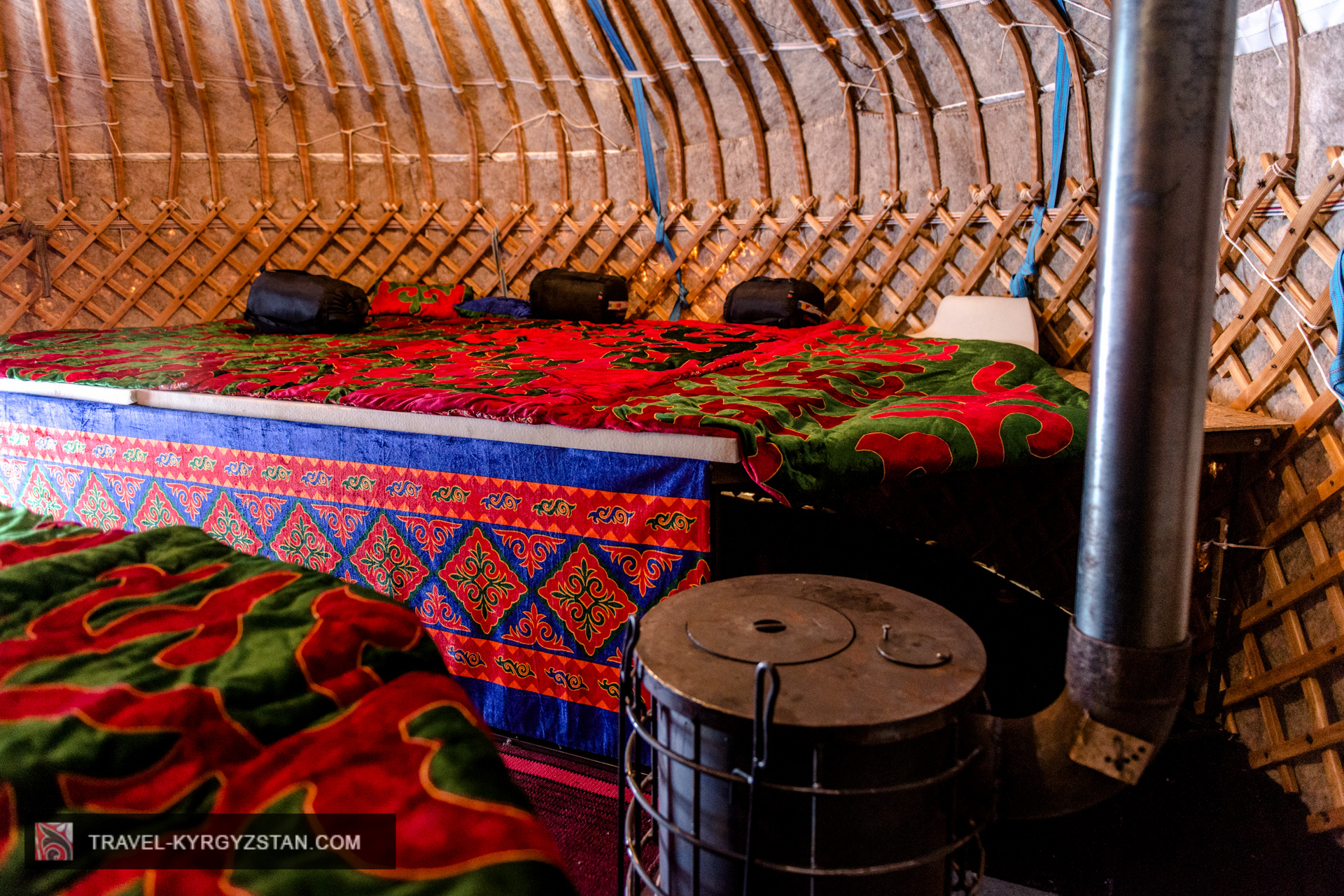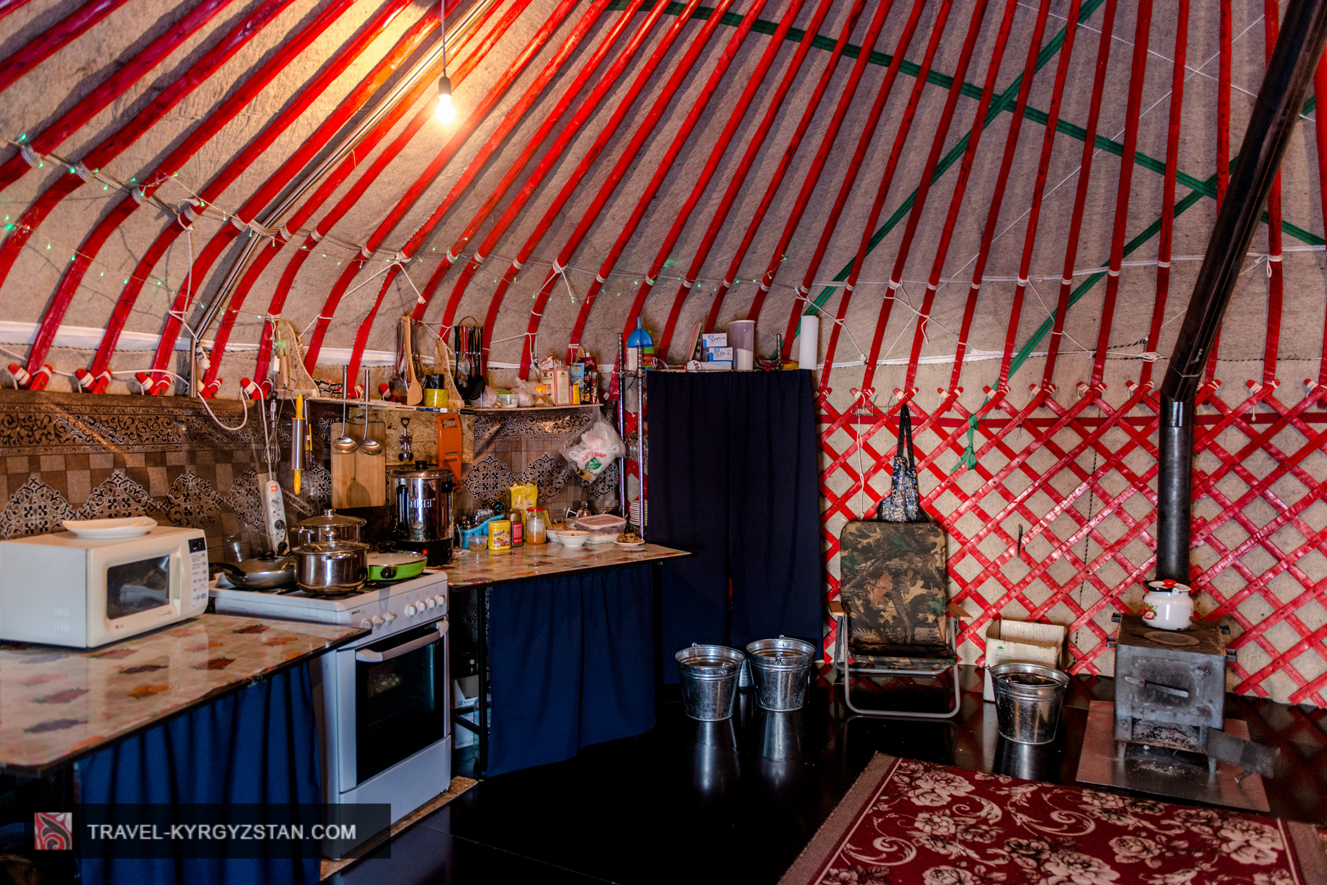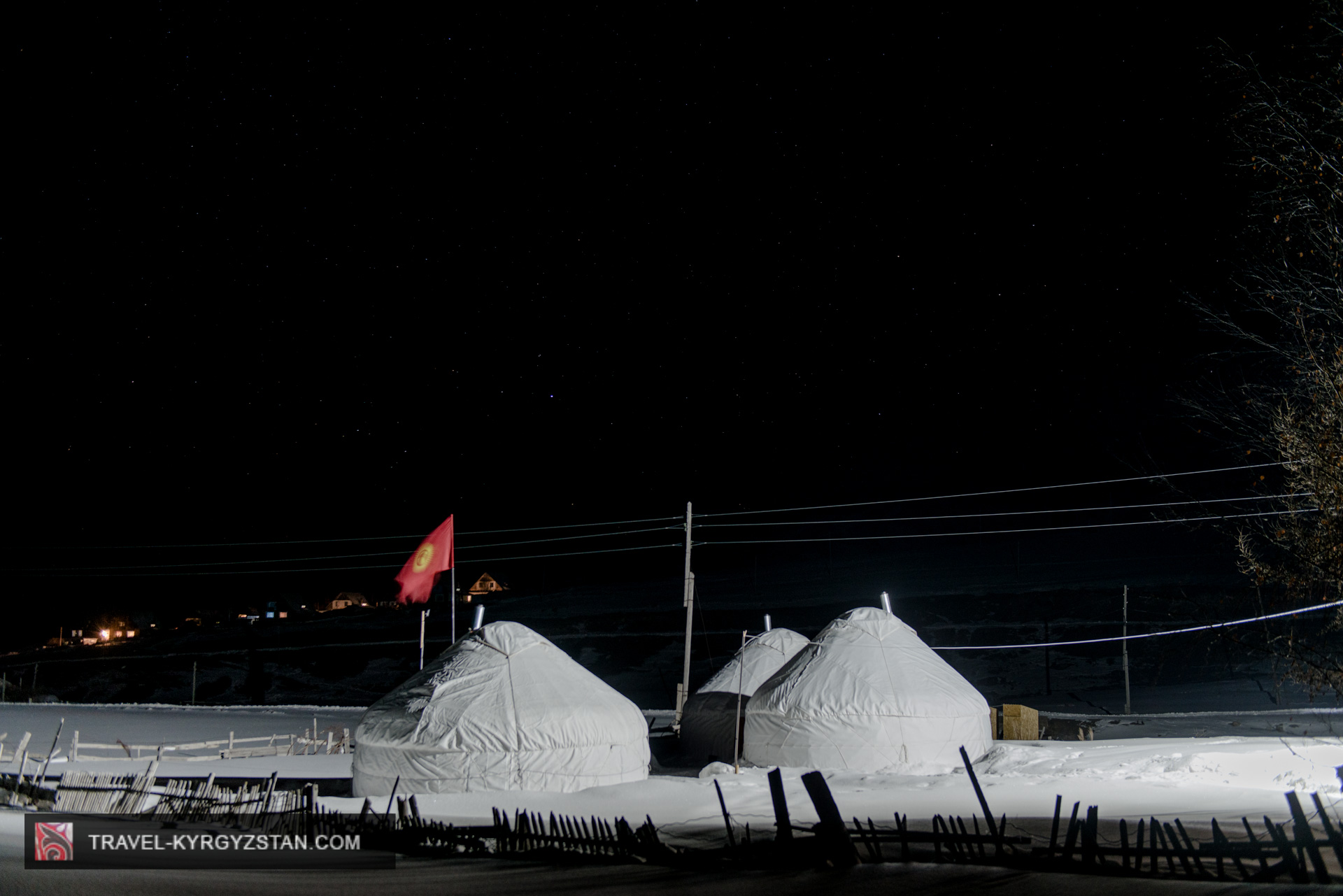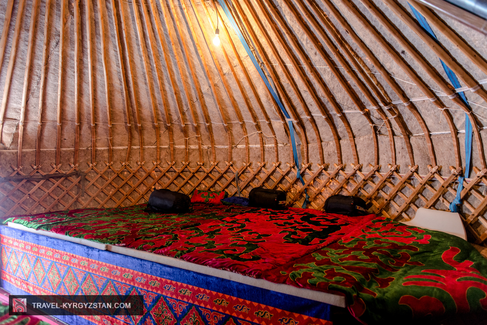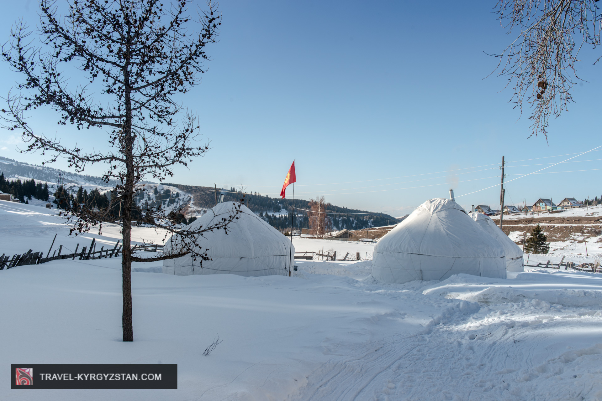 Shared and private staying options are available. Breakfast, lunch and dinner available as an option at the site. Please check actual pricing at booking.com: //www.booking.com/hotel/kg/jyrgalan-yurt-lodge.en-gb.html