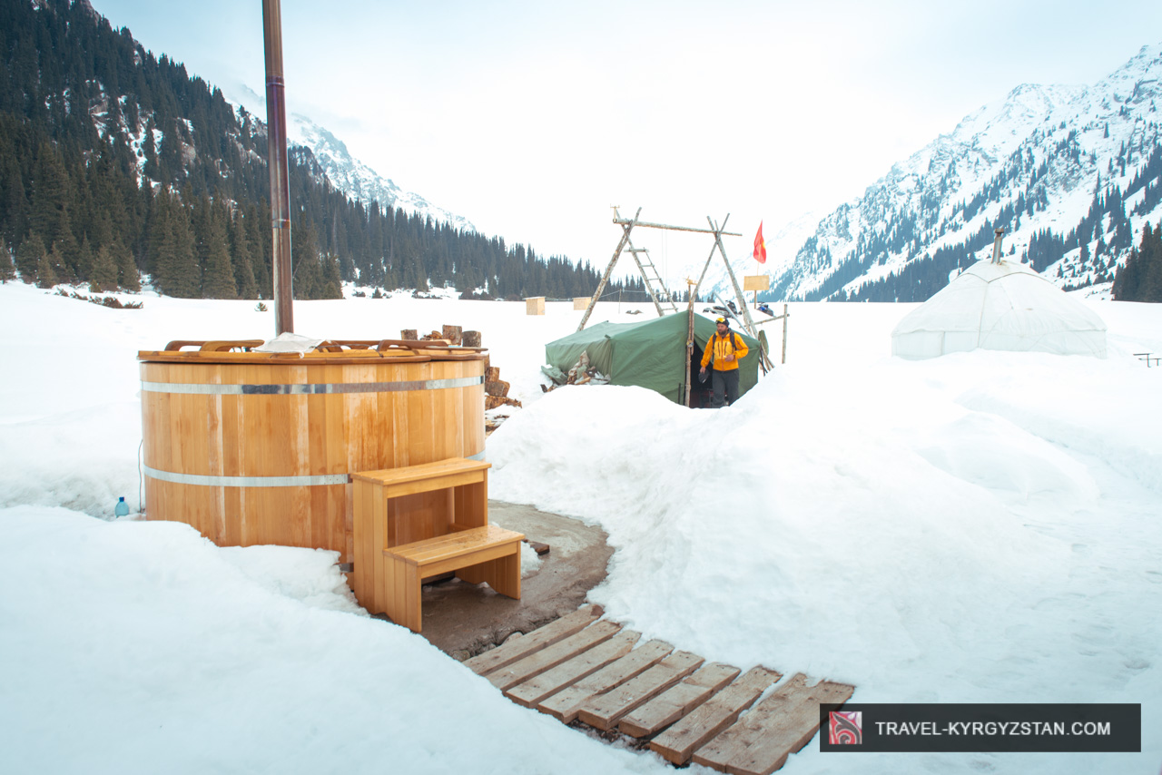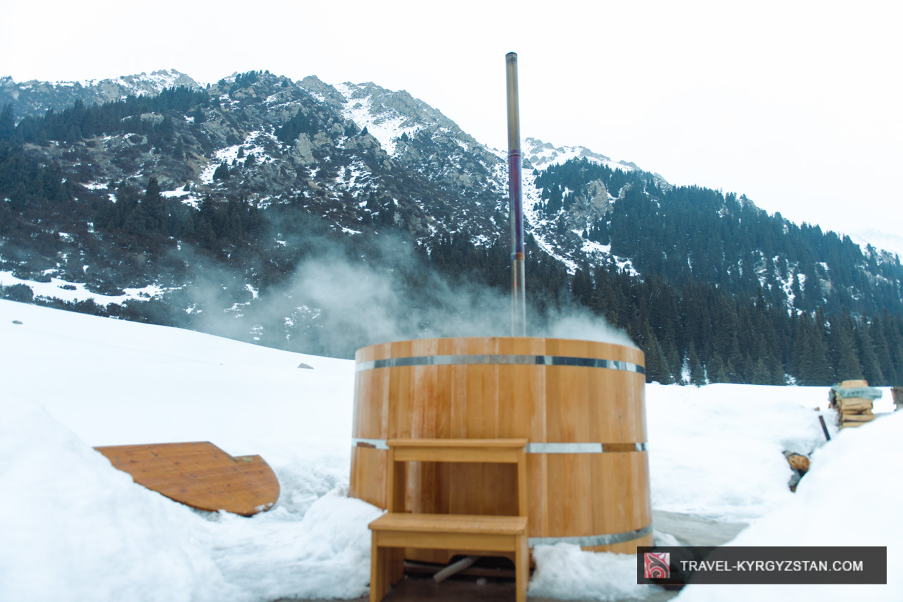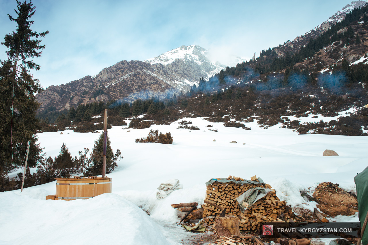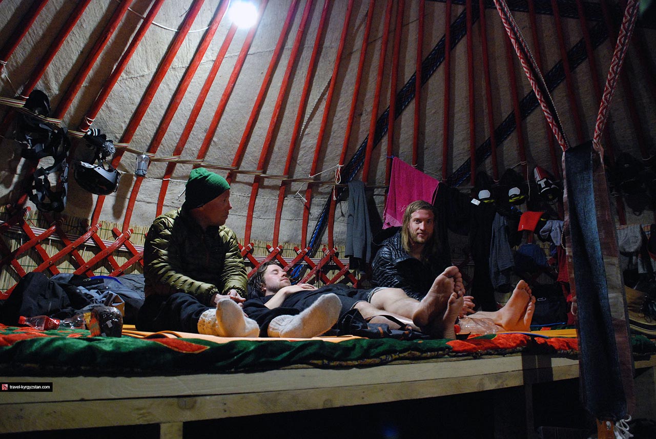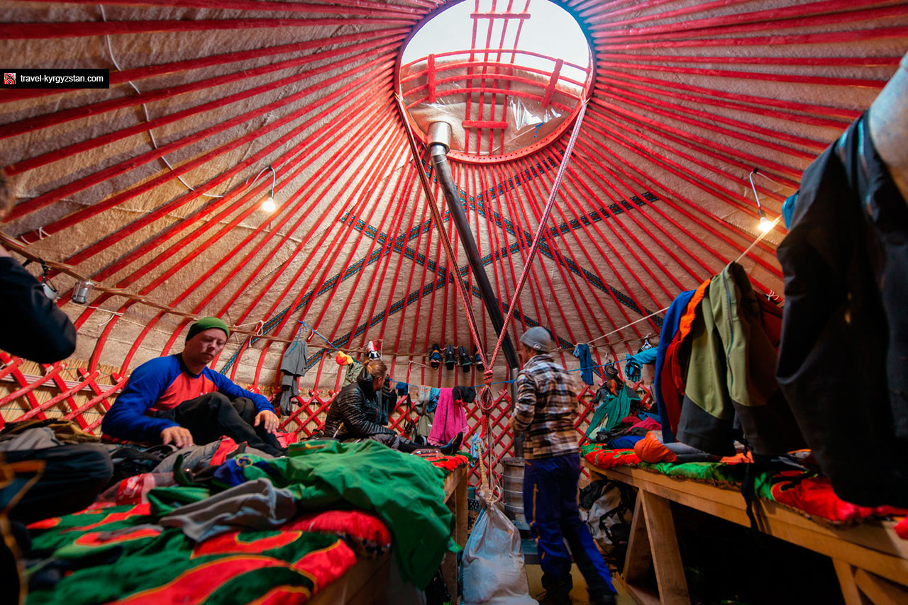 You are staying in a national-style Kyrgyz yurt and share space with others. There is a nice Finnish wood stove which keep the yurt warm in the cold nights. We provide sleeping bags (-25C) on request and foam mats but it is highly recommended to bring your own sleeping bag. You can easily dry your skiing clothes and boot liners right in the yurt. Hot sauna and ice-cold river to wash yourself and get a good recovery.