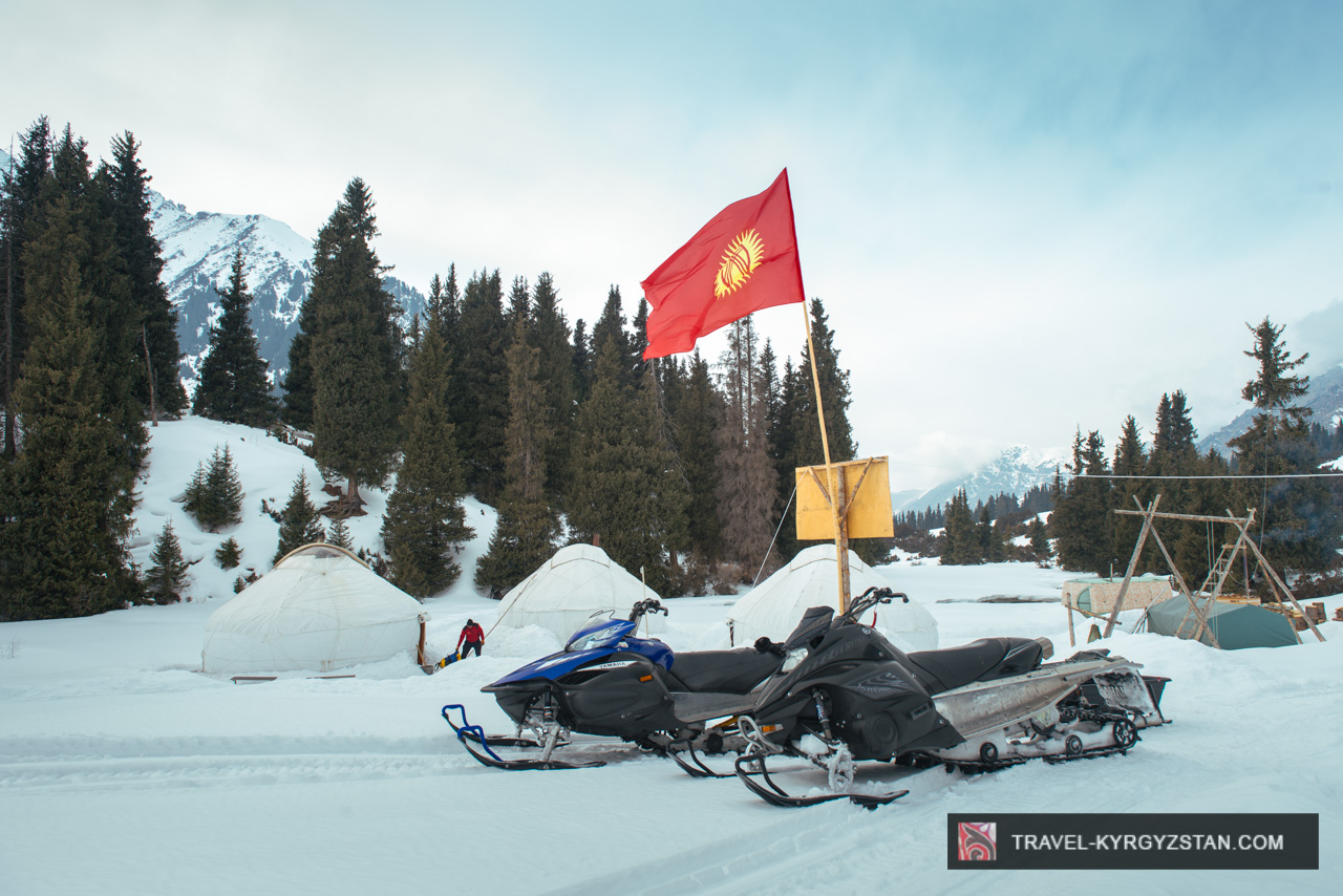 | Group and gear haul to the camp with snowmobiles | Bishkek-Karakol-Bishkek transfer (available on request) |